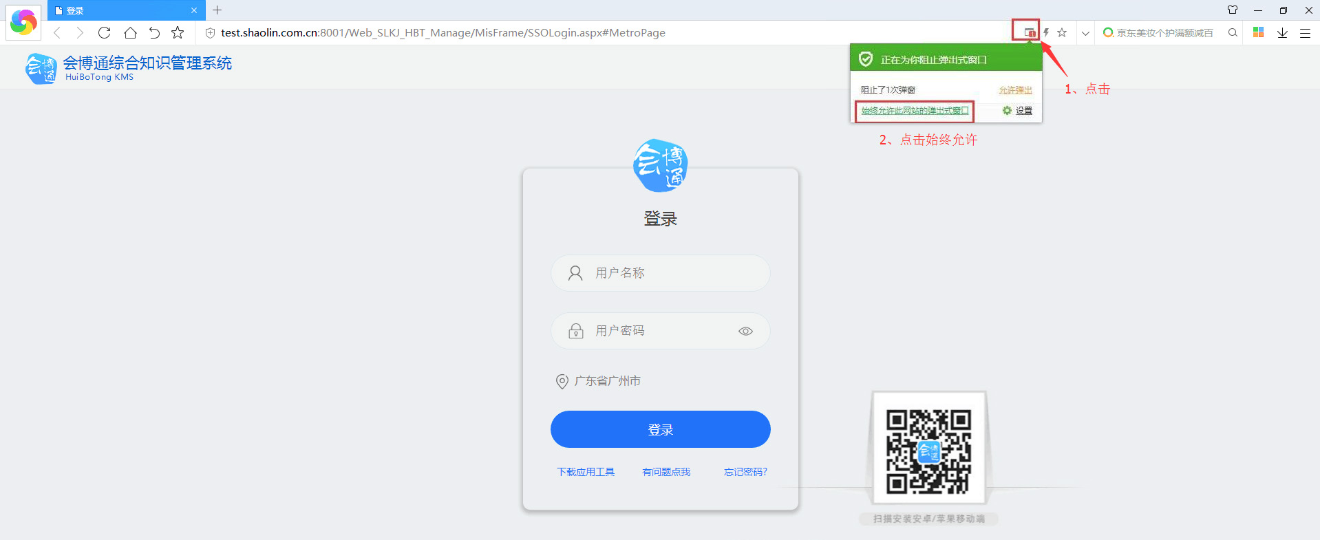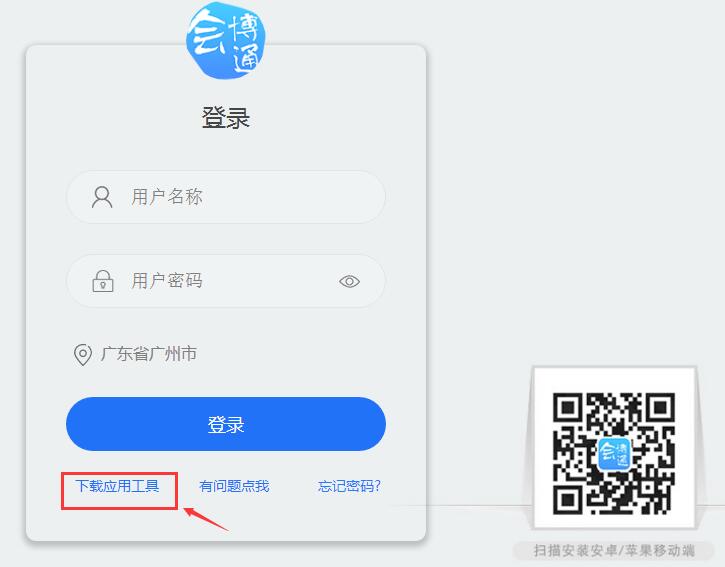 首次登陆本系统,请在登录页面,点击“下载应用工具”(如图1所示),进入下载页面(如图2所示)。